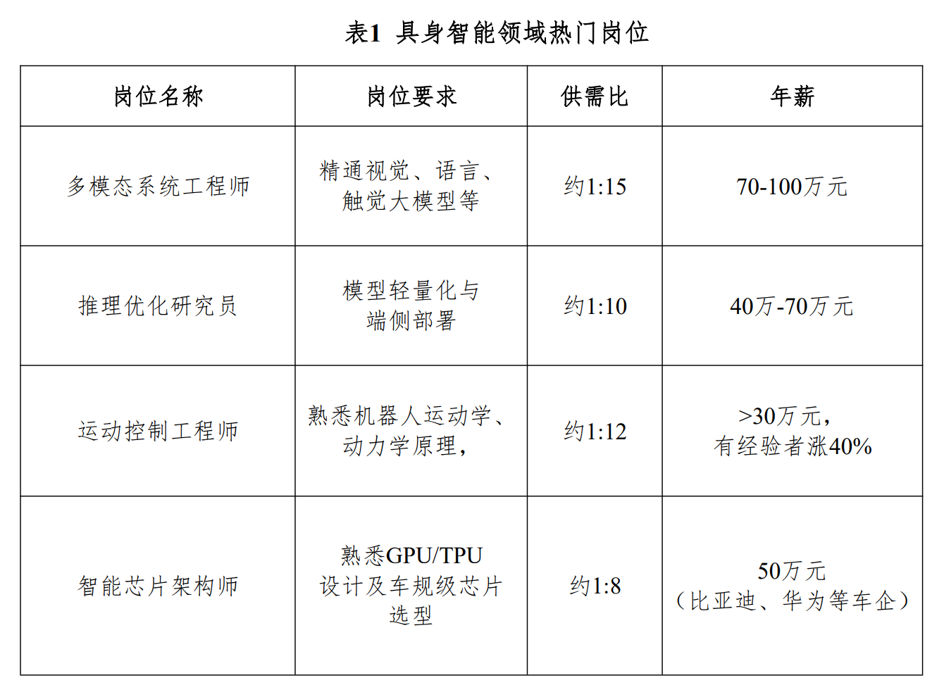 与产业爆发式增长形成鲜明对比的是,相关专业人才缺口明显,尤其是高精尖技术人才和复合型人才的需求更为庞大。据业内调研,当前各行业具身智能人才缺口约100万,其中核心研发与产品生产单位需求约40-50万人。