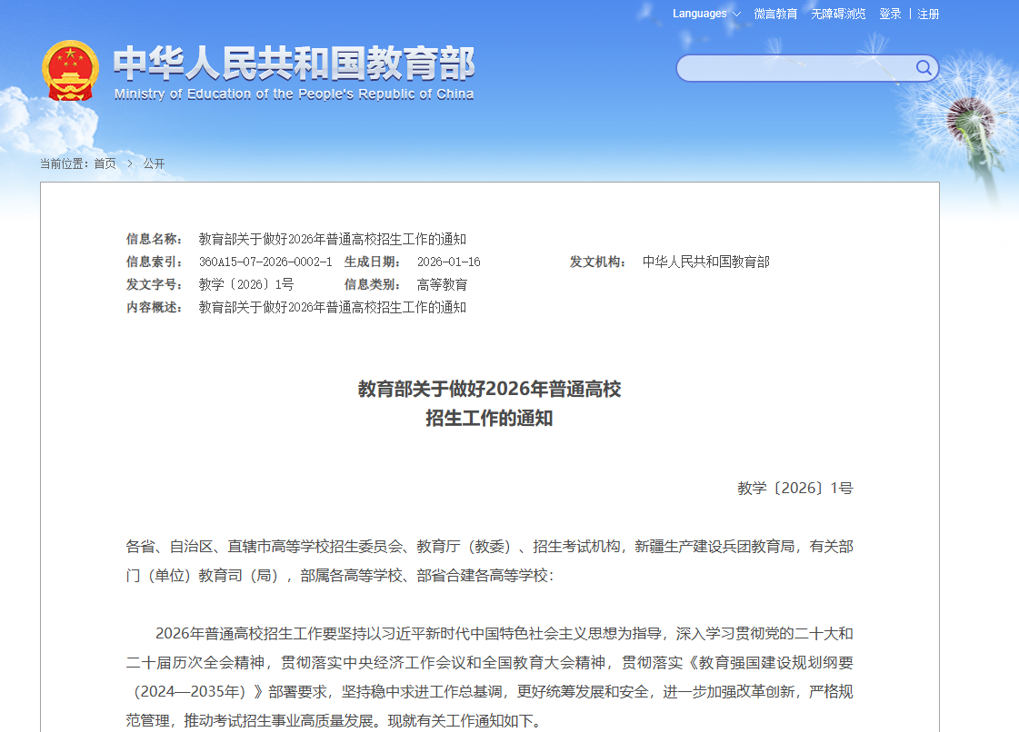 2026年全国高考定了,将于6月7日-8日开考,一般来讲,广东高考会考到6月9日。在教育部今年的高考招生工作文件里,藏着不少和考生报考相关的利好,直接关系到后续志愿填报和专业录取。