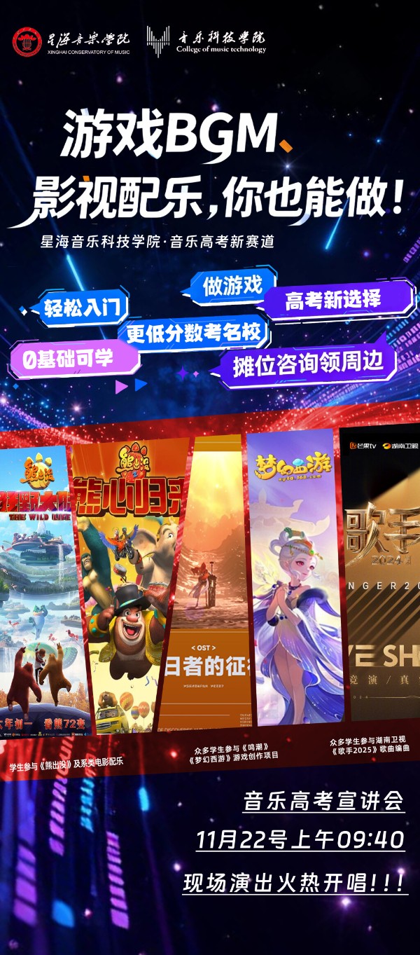 活动现场将带来音乐科技相关的趣味表演,还设有游戏音乐生成、电子音乐制作等互动体验模块,让学生直观感受“音乐+科技”的融合魅力,进一步拓宽专业选择视野。现场还将公开近三年音乐类统考合格线、文化控制线及初次就业率等权威数据,为学子提供参考。