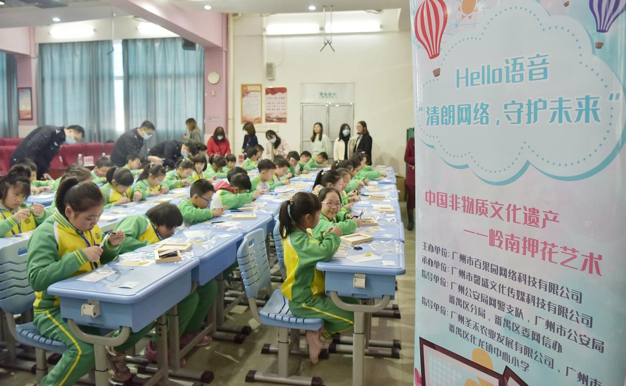 2022年2月,在广州市公安局网警支队、番禺区委网信办、番禺区公安分局的指导下,Hello语音“清朗网络 守护未来”网络安全进校园系列活动走进广州市番禺区化龙镇中心小学。该课堂结合岭南非遗押花技艺,让学生们更深入了解上网风险及应对方法,切实感受到网络安全的重要性。