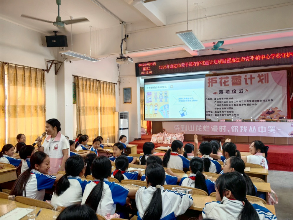 作为项目执行方,白云区天天有益青少年服务中心负责人郭逸微详细解读了“守护花蕾计划”的具体内容。她介绍,此次公益行动,将为青平镇的14所学校的乡村教师代表进行性教育能力提升培训,以及为3558位女童赠送花蕾礼包,同时开展性教育相关的花蕾课堂,提高孩子们防范性侵害、性骚扰的自我保护意识和能力。“我们不仅要‘护苗’,更要‘育苗’,让孩子们在安全的环境中学会自我保护,拥有阳光心态。”郭逸微说。