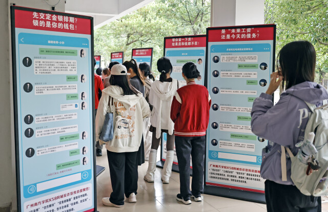 “这不就是我朋友上次碰到的那种‘刷单返现群’吗?连语气都一样。”有学生边看边笑,又拿出手机拍照记录。有学生坦言,自己曾几乎陷入类似骗局:“以前总觉得被骗的都是别人,但现在才发现,危险就在那些‘听起来很正常’的聊天里。”