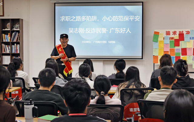“坐进骗局的桌子里,看看你能不能识破身边的骗子。”11月12日,在广州南方学院的多功能教室,一场名为“对号入座”的沉浸式反诈课堂火热上演。